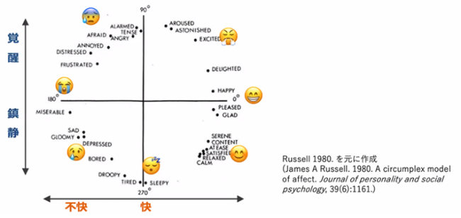 人間の様々な感情状態が数学的に2つの量で良く表現できるというのはそれ自体大変興味深いと感じました。