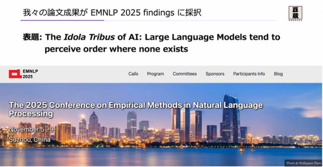 このような数列とLLMを用いた実験から、どの LLM も似たような論理的間違いをすることがわかり、生成 AI における「種族のイドラ」ではないかと指摘する論文を投稿し先述のようにEMNLP2025 findingsに採択されたそうです。